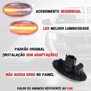 Par Seta Pisca Sequencial Peugeot 307 Lâmpada Transparente O Par Seta Pisca Sequencial Peugeot 307 é a escolha perfeita para quem busca qualidade e estilo para o seu veículo. Compatível com diversos modelos da Peugeot e Citroen, este produto é a opção ideal para quem deseja um pisca de direção lateral com acendimento sequencial. Este par de setas pisca possui a cor cristal, que proporciona um visual moderno e sofisticado ao seu veículo. Além disso, a luz led tem cor âmbar laranja , garantindo uma sinalização eficiente e segura. Fabricado em material de alta qualidade, com caixa ABS e luzes de LED, este pisca sequencial é resistente e durável, garantindo um excelente desempenho por um longo período. Especificações técnicas: - Condição: novo com . - Origem: . - Tipo: pisca de direção lateral, acendimento sequencial. - Cor luz led: âmbar laranja . - Cor externa: cristal. - Material: caixa ABS + luzes de LED. Principais perguntas: P. Necessita adaptação para instalar? R. Não, este par de setas pisca sequencial é compatível com os modelos que possuem a seta no para-lama. P. Acusa algum erro no painel do carro? R. Não, este produto não acusa erros no painel do veículo. P. Anúncio é referente a uma unidade ou o par? R. O anúncio é referente ao par, ou seja, inclui o lado direito e o lado esquerdo. P. Qual a condição do produto? R. Vendemos somente produtos novos e lacrados, garantindo a qualidade e a integridade do produto. Tenha tranquilidade de comprar com quem está disposto a oferecer o melhor atendimento. Caso precise de ajuda antes ou após a compra, conte com a nossa equipe de atendimento para lhe auxiliar. Estamos sempre à disposição para tirar qualquer dúvida. Marca: Não Informado