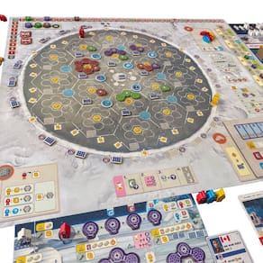 Uma base permanente está sendo construída na cratera Shackleton. no polo sul da Lua. Shackleton Base: Uma jornada à Lua é um jogo de alocação de trabalhadores onde os jogadores lideram uma das agencias espaciais, trabalhando em conjunto para expandir sua presença na base, enquanto três grandes corporações patrocinam a missão, cada uma com uma agenda diferente. Construa estruturas na base, financie projetos dessas corporações e interaja com elas para obter mais Pontos de Vitória do que seus oponentes e vencer a partida.