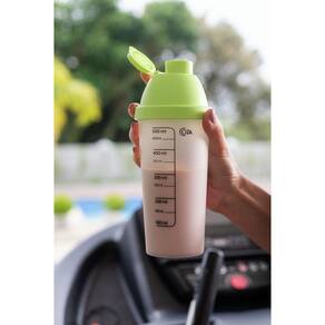 Com dimensões de 8,6 cm de comprimento e largura e 21,3 cm de altura, a Shakeira é livre de BPA. O corpo, fabricado em polipropileno, e a tampa em polímero super-resistente são duráveis e fáceis de limpar. O misturador integrado é perfeito para evitar grumos em suas batidas. Recomenda-se não usar com bebidas que contenham gás ou estejam quentes.