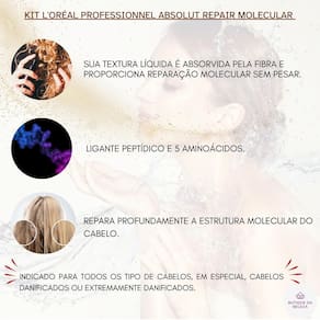 Transforme a saúde dos seus cabelos com o shampoo e máscara loréal professionnel absolut repair molecular e experimente uma reparação profunda que devolve vida e beleza aos seus fios.