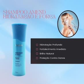 Shampoo amend expertise hidratação e força 250ml Se você quer cabelos mais fortes e hidratados, o shampoo amend hidratação e força 250ml é a solução perfeita. Com uma fórmula rica e altamente eficaz, ele oferece a nutrição necessária para combater o ressecamento e a quebra dos fios. Criado para transformar a saúde capilar, esse shampoo proporciona força e vitalidade desde a primeira aplicação. Indicado para qual tipo de cabelo Ideal para cabelos frágeis e ressecados que precisam de uma dose extra de hidratação e proteção. Indicado para quem busca força e maciez em um único produto. Benefícios Hidratação profunda: ingredientes poderosos que hidratam os fios sem pesar. Fortalecimento imediato: proporciona mais resistência, prevenindo a quebra. Brilho natural: deixa os cabelos com um brilho saudável e aparência renovada. Proteção contra danos: forma uma camada protetora que combate agressões externas e Fortalece os fios. Modo de uso Aplique o shampoo amend hidratação e força 250ml nos cabelos molhados, massageando suavemente até formar espuma. Enxágue bem e, se necessário, repita a aplicação. Para resultados mais intensos, finalize com o condicionador da mesma linha.