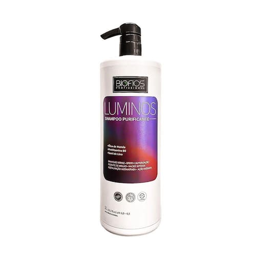 Shampoo antiresiduos purificante luminos - biofios profissional - limpeza profunda 1l Shampoo purificante - luminos - lavatório 1l Shampoo de tratamento para cabelos oleosos. Purifica o couro cabeludo e controla a oleosidade.Limpa as impurezas do fio, ajuda a proteger as cutículas capilares contra radicais livres além de promover maior luminosidade. Ativos - óleo de marula: auxilia na hidratação do cabelo, nutre o fio da raiz às pontas sem deixá-lo pesado ou oleoso, tem rápida absorção, combate o frizz e rico em vitamina c com propriedades antioxidantes.- provitamina b5 d-pantenol : confere maciez aos fios, deixa os cabelos hidratados , nutridos, fortalece os fios, estimula a cicatrização além de eliminar pontas duplas.- semi de lino: possui alto pode e hidratante deixando o cabelo excepcionalmente brilhante. Como usarAplique o luminos shampoo purificante sobre os cabelos úmidos, massageando da raiz às pontas e então enxágue. Caso necessário, repita o processo. ResultadoCouro cabeludo tratado e cabelos limpos, com menos frizz e livres da oleosidade excessiva