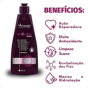 O Shampoo Arvensis Revolution BB Hair combina limpeza eficaz com tratamento cosmético inteligente. Sua fórmula inovadora entrega uma experiência completa desde o primeiro passo do cuidado capilar, promovendo uma lavagem suave que respeita o equilíbrio do couro cabeludo e prepara os fios para receber os demais tratamentos da linha. Enriquecido com ativos multifuncionais, o produto atua profundamente na fibra capilar, oferecendo 10 benefícios simultâneos, como hidratação, maciez, brilho, força e proteção contra danos externos. Ele é ideal para cabelos que passam por agressões diárias, como químicas, calor e poluição, e precisam de um cuidado restaurador contínuo.