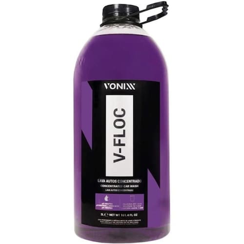 V-floc vonixx é um lava autos de alta performance e de ph neutro, desenvolvido exclusivamente para o profissional do car detail. Por conter matérias primas de alto padrão tais como agentes condicionadores e tensoativos especiais, proporciona uma lavagem suave e eficiente sem remover ceras ou selantes, sendo perfeito para quem busca qualidade e economia na lavagem do veículo.