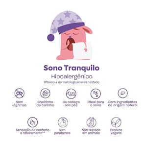 Características Adicionais: Foi elaborado com ingredientes cuidadosamente selecionados para o cuidado e a limpeza dos cabelos do seu bebê. A fragrância é suave e contém notas de lavanda, que ajudam o bebê a acalmar, proporcionando uma agradável sensação de conforto e relaxamento.
