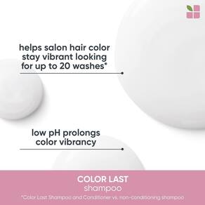 - Uso sugerido: aplique nos cabelos molhados e ensaboe com um movimento de massagem. Recomendamos que você combine o shampoo Color Last com o condicionador Color Last para ajudar a manter seus cabelos tingidos.