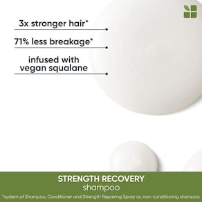 — Benefícios: Este shampoo adiciona maciez e maciez ao cabelo enquanto nutre cabelos três vezes mais fortes após um uso com três vezes menos quebras — Benefícios adicionais: este produto é vegano, livre de crueldade e em uma garrafa 100% reciclada. Adora fibra forte ou dose de queratina? Experimente o novo Strength Recovery para ajudar a reparar todos os tipos de cabelos danificados.
