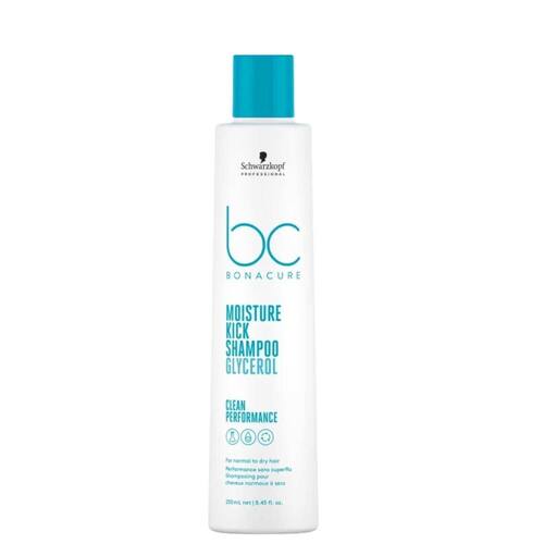 Shampoo Bonacure Clean Moisture Kick 250ml Shampoo para cabelos normais a secos, ondulados ou cacheados. Schwarzkopf Professional BC Bonacure Clean Performance Moisture Kick limpa suavemente com ação hidratante. O Shampoo Schwarzkopf Professional BC Bonacure Clean Performance Moisture Kick apresenta fórmula que ajuda a equilibrar o nível ideal de hidratação dos cabelos sem pesar nos fios. A linha Moisture Kick conta com a ação do Glicerol que proporciona uma sensação de cabelo hidratado por até 48 horas. A gama BC Bonacure Clean Performance apresenta uma fórmula clean beauty inovadora, 100% vegan, sem sulfatos, silicones, óleos minerais, microplásticos e corantes artificiais, com um elevado nível de biodegradabilidade; tecnologia avançada com Vegan Care Complex; e embalagens sustentáveis em produtos de rendimento elevado. Glicerol: proporciona uma hidratação equilibrada e duradoura ao couro cabeludo e ao cabelo. Suaviza a superfície do cabelo e previne a desidratação. Tecnologia Avançada: traz a nova Tecnologia Vegana com aminoácidos de trigo e soja que restaura a força e elasticidade no interior do Córtex; e o Equalizador de Células - com uma ação externa que alinha e sela a cutícula capilar. O resultado é um cabelo bonito, com proteção renovada, excelente elasticidade e brilho saudável, seja ele liso, ondulado, cacheado ou crespo. Além disso, essa tecnologia não contém compostos derivados de animais e é respaldada pelos padrões de qualidade da Henkel. Fórmulas Limpas: Bonacure Clean Performance oferece uma composição 100% vegana, livre de sulfatos, silicones, parabenos, óleos minerais, microplásticos e corantes artificiais, apresentando alto nível de biodegradabilidade - de 88% a 99%. O compromisso da marca com o meio ambiente vai além: a exclusiva tecnologia Fast-Rinse nos condicionadores significa que é possível utilizar 50% a menos de água para enxaguar o produto. Além disso, os itens sem sulfato fazem menos espuma que os demais. É o caso dos novos Shampoos, que têm uma ação ainda mais potente que a linha Bonacure anterior. Embalagens Sustentáveis: limpa por dentro e por fora, a embalagem Bonacure Clean Performance é amiga do planeta, totalmente reciclável e feita com até 97% de plástico reciclado. Para produzi-la, a Schwarzkopf Professional reciclará mais de 260 toneladas de plástico, enquanto usa 72% menos plástico com a introdução de novas tampas. Cabelo limpo, hidratado e com sensação de leveza. Conselho de Aplicação Aplicar no cabelo molhado, massagear e enxaguar completamente. Repetir se necessário. Faça sempre duas lavagens com o shampoo. A primeira irá retirar todas as impurezas mais pesadas, enquanto a segunda finaliza a higienização do couro cabeludo e inicia o tratamento.
