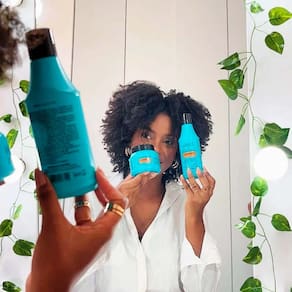 02. Enxaguar e repetir a aplicação do Shampoo Cachos Forever Liss, deslizando os fios entre os dedos.