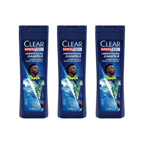 Shampoo clear 400ml men hidrat campeã vini jr - kit com 3un