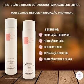 Combine com outros produtos da linha MAB Blonde Rescue para potencializar a hidratação e a proteção dos cabelos loiros.?