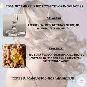 Hidratação Profunda: O squalano presente na fórmula nutre e protege os fios, enquanto o tamarindo, rico em antioxidantes, forma um filme protetor que hidrata e dá brilho, além de proteger contra os raios UV. ?