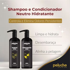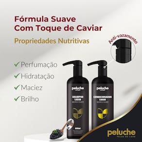 O shampoo e condicionador neutro e filhote à base de caviar da peluche cosméticos pet foi desenvolvido para limpar e neutralizar os odores para todas as idades, mantendo as características naturais dos pelos. Sua fórmula balanceada com toque de caviar proporciona aos pelos maciez e brilho após um banho seguro e eficaz para o pet.