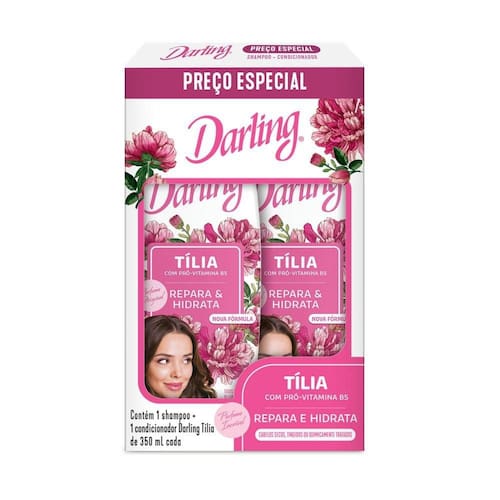 Esse shampoo e condicionador Darling Tília, para cabelos secos, tingidos ou quimicamente tratados, ajuda a restaurar os fios, deixando-os fortes e perfumados. Benefícios para você: Fórmula enriquecida com tília e vitamina B5. Repara e hidrata os cabelos. Para cabelos secos, tingidos ou quimicamente tratados. Contém 1 shampoo + 1 condicionador Darling Tília de 350 ml cada Perfume incrível Sem sal.