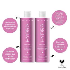 - 01 Shampoo Jacques Janine Hair Care Hydra 450ml. - 01 Condicionador Jacques Janine Hair Care Hydra 440ml.