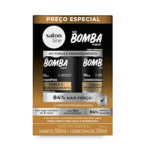 O Kit SOS Bomba Força e Engrossamento da Salon Line foi desenvolvido especialmente para cabelos finos, ralos e quebradiços, promovendo fios mais grossos em apenas 3 usos. Com uma fórmula poderosa e testada, garante fios 19% mais espessos e 84% menos quebra, fortalecendo e revitalizando a fibra capilar. Além de deixar os cabelos visivelmente mais densos e encorpados, reduz a quebra e aumenta a resistência capilar, deixando os fios mais volumosos saudáveis e protegendo contra danos e quedas causadas por fraqueza, mantendo os cabelos nutridos, macios e brilhantes.