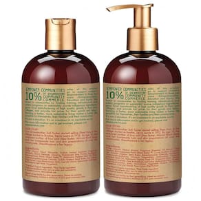 HIDRATAR E REPARAR Use este conjunto de xampu e condicionador altamente eficaz como um sistema para reparar o cabelo danificado por produtos químicos ou processamento excessivo enquanto infunde umidade, condiciona e suaviza o cabelo ab e reduz a quebra do cabelo. MEL DE MANUKA HIDRATANTE O mel de Manuka é derivado do arbusto de Manuka, nativo da Nova Zelândia e incorporado em nossos produtos para cabelos por suas propriedades umectantes naturais combinadas com sua capacidade de atrair e reter a umidade. EXTRATO DE IOGURTE NUTRITIVO E ÓLEO DE MAFURA Umidade nutritiva e suavidade são alguns dos benefícios do extrato de iogurte e do Óleo de Mafura, que se combinam para contribuir para um cabelo com aparência e sensação mais saudáveis. EXTRATO DE FIGO E ÓLEO DE BAOBAB COM VITAMINA C Este conjunto de xampu e condicionador inclui extrato de figo e óleo de baobá que contém vitamina C. A vitamina C promove o crescimento saudável do cabelo e pode ajudar a reduzir a queda de cabelo. Também pode aliviar um couro cabeludo seco e com coceira. SOBRE A MARCA Não testamos em animais. Nossos produtos incluem ingredientes orgânicos certificados e de comércio justo sem parabenos, ftalatos, óleo mineral ou sulfatos. Nossa embalagem contém um mínimo de 25 de resina pós consumo Marca: Não Informado