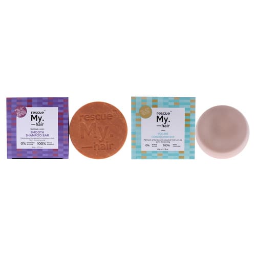 The Rescue My. O Hair Smooth Conditioner Bar nutre e suaviza o cabelo com a mistura sinérgica de 5 óleos que hidratam, suavizam e reduzem o frizz. É a alternativa vegana e mais ecológica aos condicionadores convencionais. O condicionador contém extrato de óleo de semente de rosa silvestre, azeite, semente de uva, germe de milho e óleo de semente de girassol. Com o aroma de patchouli e sândalo. Esta barra de shampoo suavizante é criada de forma ambientalmente responsável com tecnologia exclusiva sem sabão. É naturalmente colorido com extratos e um suave pH 5.5 neutro.