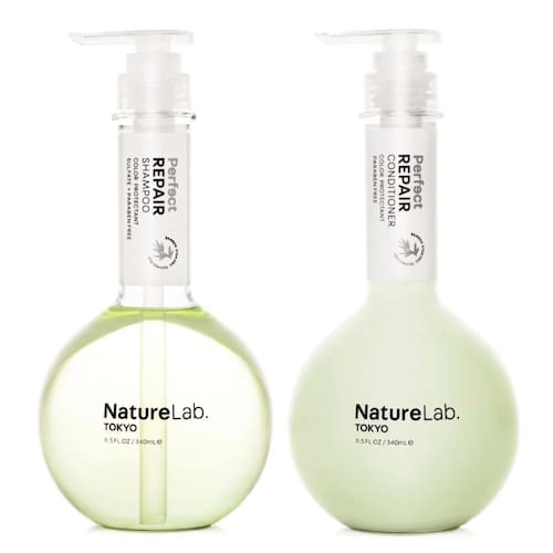 NatureLab Shampoo Tokyo Perfect Repair Shampoo: Shampoo reparador para reabastecer e restaurar cabelos danificados, tingidos e fortalecer novos cabelos I 340 ml. Condicionador de reparo perfeito NatureLab Tokyo: Condicionador hidratante para reabastecer e restaurar cabelos danificados, tingidos e fortalecer novos cabelos I 340 ml.