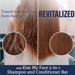 Kiss My Face Shampoo 2 em 1 + barra condicionador - óleo de palma, sem crueldade para cabelos secos, sem brilho e frizz com aveia e manteiga de karité - 113 gramas
