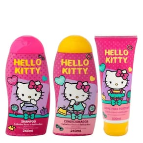 O Creme para Pentear Cabelos Lisos e Delicados Hello Kitty contém Extrato de Frutas Vermelhas e Silicone, que deixam os cabelos mais brilhantes, macios e fáceis de pentear. Muito Suave. Dermatologicamente Testado.