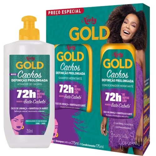 Ativador de cachos definição prolongada, 72 horas. Contém Óleo de Linhaça + Manteiga de Karité, definição natural, movimento e maciez. Onduladas e cacheadas.