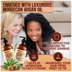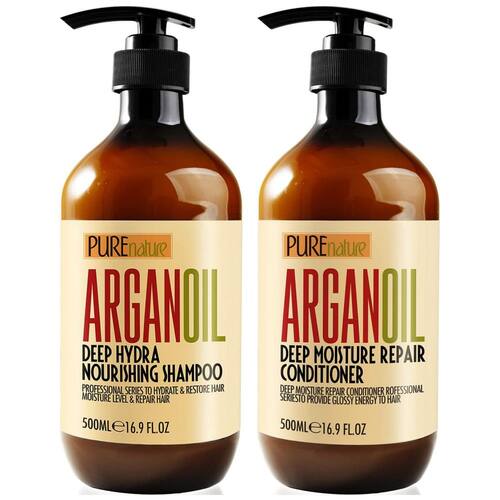 CONJUNTO DE SHAMPOO E CONDICIONADOR DE ÓLEO DE ARGAN MARROCOS Hidrata e restaura os níveis de umidade. e saudável para cabelos tratados com coloração e queratina. Contém um protetor térmico e UV com vitaminas e antioxidantes, que nutrem e reparam os cabelos do uso diário de um secador de cabelo, ferro liso ou chapinha ou cabelos tratados quimicamente. Recomendado por estilistas profissionais para todos os tipos de cabelo, especialmente aqueles com cabelos crespos, encaracolados, ondulados, finos ou espessos. O MELHOR CUIDADO COM O LUXO SEM SACRIFICAR SUA SAÚDE Não contém sulfatos, parabenos, cloreto de sódio, glúten ou fotohalatos. Os pesquisadores descobriram que os shampoo que contêm sulfatos e outros ingredientes nocivos podem causar coceira no couro cabeludo, irritações e doenças graves da pele, perda de cabelo e danos, além da capacidade de criar compostos de nitrato que foram associados ao câncer e danos às células. Pure Nature não contém NENHUM desses produtos químicos. VOLUME HIDRATANTE E CONTROLE Este Shampoo Nutritivo para Hidra Profunda e Condicionador Reparador de Umidade proporciona uma estrutura bonita ao cabelo, deixando o macio e manejável, produzindo brilho e vida incríveis. Ajuda a controlar e alisar os cabelos crespos, deixando o cabelo sedoso também suaviza e ajuda na definição de ondulação. Contém vitamina E que penetra na cutícula do cabelo, resultando em cabelos mais fortes, mais espessos e mais jovens. Shampoo Disponibilidade Para todos os tipos de cabelo, hidrata e restaura os níveis de umidade, fornece nutrição instantânea aos cabelos danificados Características Super enriquecido com vitamina E, antioxidantes e ácidos graxos essenciais insaturados para manter o cabelo saudável, enquanto limpa o cabelo com delicadeza. Ajuda a reparar os danos cas por produtos químicos durante o perm tingir e o calor excessivo da modelagem, deixando o cabelo com uma suavidade brilhante. Condicionador Disponibilidade Para todos os tipos de cabelos, proporciona reparos nutritivos em profundidade, hidrata e restaura o equilíbrio natural do cabelo, restaura a elasticidade, o brilho e a capacidade de gerenciamento. Enriquecido com proteínas e queratina e infundido com óleo de argan, penetra profundamente no cabelo para ajudar a restaurar a elasticidade e recuperar a força, reparando os danos cas por fatores ambientais, desconforto térmico e tratamentos químicos de cores. Fórmula anti desbotamento deixando os cabelos incrivelmente hidratados com um brilho brilhante