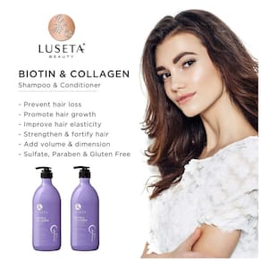 Evitar a perda de cabelo e promover o crescimento do cabelo. A biotina, também conhecida como vitamina B7, contribui para a produção de cabelos saudáveis o colágeno, a proteína mais abundante no corpo humano que ajuda a renovar as células, melhora a saúde da pele e dos cabelos e garante a elasticidade e a regeneração dos cabelos. Ajuda a fortalecer e fortalecer o cabelo para uma aparência mais espessa e saudável Adiciona volume e dimensão para uma aparência mais completa Livre de sulfato e parabeno e não testado em animais. Uma mistura natural de luxo com vitamina B7, biotina, colágeno hidrolisado e óleo de argan, ajuda a restaurar os nutrientes necessários em cada fio e deixa o cabelo mais forte, mais volumoso, mais espesso e saudável. Shampoo Água Aqua, Eau, Cocilsilionionato de sódio, Cocamidopropil Betaína, Gliceril, Dimeticona, Cocamida Mea, Parfum, Distearato de Glicol, Cloreto de Sódio, Guar Hidroxippropiltrimonio Cloreto, Hidroxippropiltrimonio Hidrolisado de Óleo de Colágeno, Biotinodromo CI 17200, Dmdm Hidantoína, Iodopropinil Butilcarbamato Condicionador Água Aqua, Eau, Álcool Cetearílico, Ciclopentasiloxano, Cloreto de esteartrimônio, Dimeticona, Propileno glicol, Hidroxietil celulose, Gliceril estearato, Parfum, Hidroxipropiltrimonio, hidroxipropiltrimonio, hidrolisado de hidro hidroxipropileno, colinesterase, hidroxipropiltrimonio, hidrolisado de hidroxipropileno, colinesterase, hidrolisado de hidroxipropiltrimonio, colinesterase, cloridrato de hidroxipropiltrimonia , Edta tetrassódico, ácido cítrico, CI 17200, Dmdm hidantoína, butilcarbamato de iodopropinilo