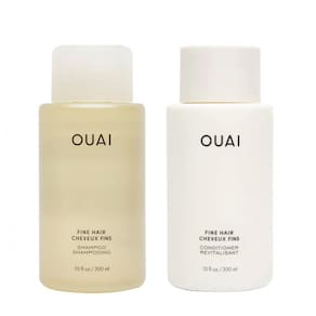 O kit OUAI Fine inclui shampoo e condicionador para cabelos finos, formulados para limpeza suave, hidratação leve e ganho de volume sem pesar. O shampoo contém queratina hidrolisada para ajudar na estrutura capilar, biotina para resistência dos fios e óleo de semente de chia que promove aparência encorpada. O condicionador complementa com ativos semelhantes, facilitando o desembaraço e deixando os fios macios sem aumentar a oleosidade. Ambos são livres de sulfatos, parabenos e ftalatos, apresentando suave fragrância Mercer Street com notas cítricas e florais. Indicado para uso diário em cabelos finos, inclusive com coloração.