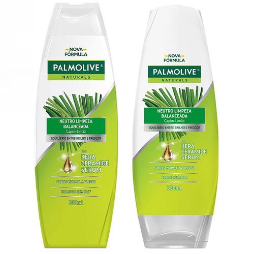 O kit é composto por: 1 Shampoo Palmolive Neutro Limpeza Balanceada Naturals 350ml 1 Condicionador Palmolive Neutro Limpeza Balanceada Naturals 350ml Limpa suavemente e nutre seu cabelo de dentro para fora. sinta-se confiante com cabelos fortes e macios que brilham com vida. capim limão, equilíbrio entre brilho e frescor. cabelo normal a oleoso, sem sal.