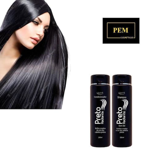 . Contém 1 shampoo + 1 condicionador preto radiante.
