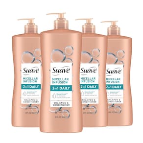 - Infundido com água micelar, o shampoo e condicionador Suave Micellar Infusion 2 em 1 limpa e condiciona o cabelo em uma única etapa.
