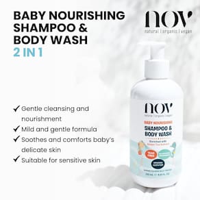 Shampoo e sabonete líquido vegano orgânico natural para bebês NOV | Fórmula vegetal sem lágrimas para limpeza e hidratação suaves, feita sem ingredientes agressivos