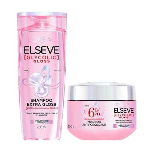 Shampoo Extra Gloss 200ml + Tratamento Antiporosidade 300g Elseve Glycolic Gloss
