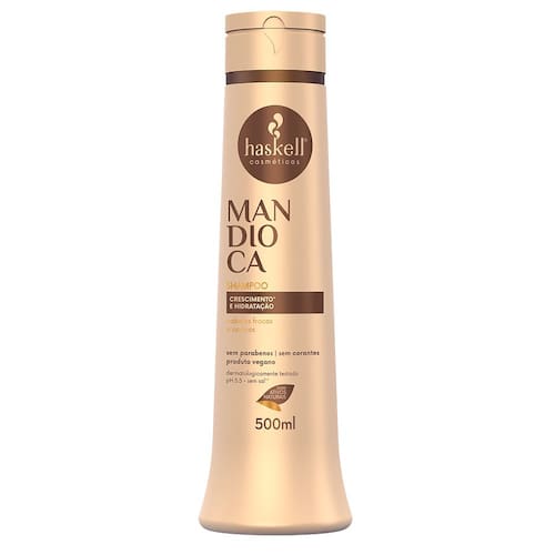 SHAMPOO HASKELL MANDIOCA Para cabelos opacos e sem vida. Rico em Minerais e Vitaminas do Complexo B, o extrato de Mandioca atua nos cabelos oferecendo brilho e maciez. O uso contínuo do Shampoo Mandi