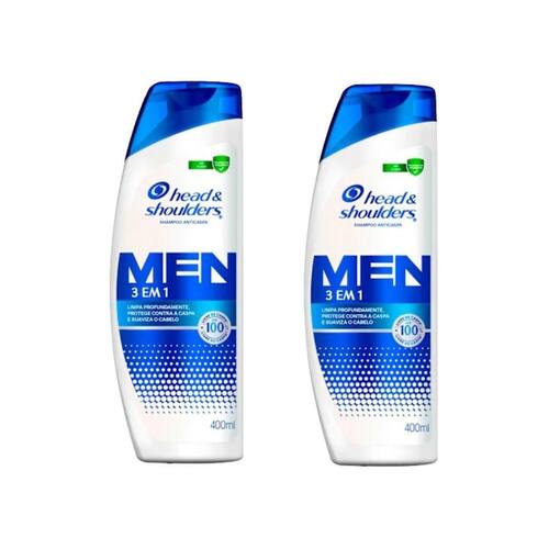 Shampoo head & shoulders 400ml men 3 em 1 - kit com 2un