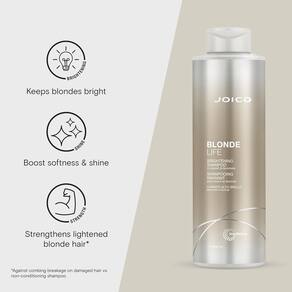 Para loiras naturais e processadasshampoo iluminador blonde life Nunca mais perca a calma com este limpador neutralizante de latão e sem sulfato que instantaneamente chuta esses tons amarelos indesejados para o meio-fio. Com ingredientes poderosos que combatem o frizz, adicionam hidratação e levam uma mão suave com fios frágeis e destacados, seu cabelo loiro se torna brilhante, brilhante e brilhantemente lindo. Instruções: sature o cabelo completamente com água morna, depois trabalhe em uma boa dose de shampoo, massageando suavemente em uma espágua. Enxágue e repita, se necessário. Marca: Não Informado