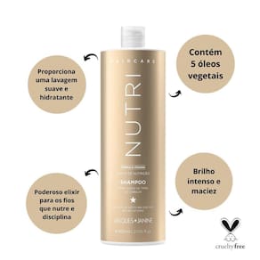 O shampoo nutri foi elaborado para nutrir seus cabelos proporcionando uma lavagem suave e hidratante. Sua fórmula vegana contém 5 óleos vegetais que juntos formam um poderoso elixir para os fios, nutrindo e disciplinando.