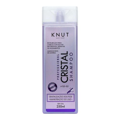 ========================================================================================= Shampoo Pós Química Knut Cristal 250ml Shampoo para cabelos com escova progressiva, definitiva ou alisamento. Knut Cristal Shampoo prolonga o efeito e dá brilho. Além de limpar, ajuda a nutrir e reconstruir as partes danificadas do fio.