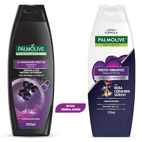 Shampoo Palmolive Naturals Pretos Vibrantes 350ml Para cabelos escuros, ilumina a a cor natural ou tingida e nutre os fios de dentro para fora. Benefícios: Fórmula com Melanina & UV Iluminador. Desenv