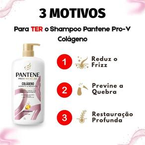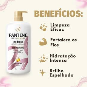 Modo de Uso/Aplicação Aplique o Shampoo Pantene Pro-V Colágeno Hidrata e Resgata sobre os cabelos molhados, massageando suavemente o couro cabeludo e os fios. Enxágue completamente. Se necessário, repita o processo para uma limpeza e tratamento mais profundos.