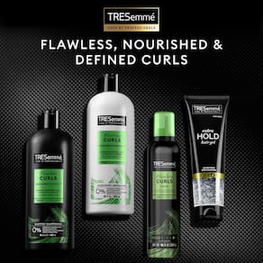 - Refrescante CURL: O spray refrescante TRESemmé Flawless Curls é um condicionador leve para cabelos reidratar e domar cachos frizz.