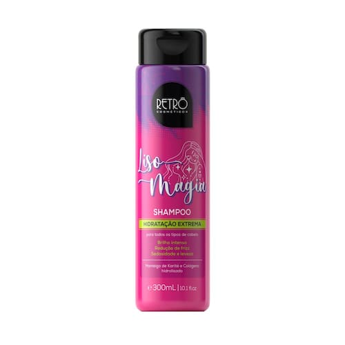 Aplique o Shampoo RETRÔ LISO MAGIA sobre o cabelo Úmido, massageie suavemente o couro cabeludo e enxague completamente. Se necessário, repita a operação. Para melhores resultados, convém utilizar associado aos demais produtos da linha RETRÔ LISO MAGIA.