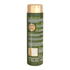 Ativos: Azeite de oliva: Rico em vitaminas E e ácidos graxos, possui propriedades regenerativas que auxiliam na restauração da fibra capilar, além de garantir extranutrição, maciez e cutículas totalmente seladas. Óleo de argan: Com poderosa ação umectante, nutre e hidrata, recuperando totalmente a fibra danificada. Além de garantir ação antifrizz e proporcionar brilho extremo.