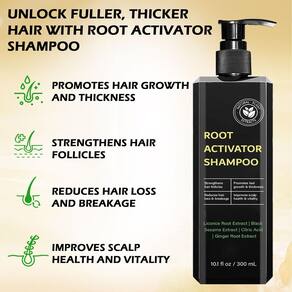 - Ativa os folículos capilares para cabelos mais grossos, este xampu ativador de raiz ajuda a combater a queda de cabelo, estimulando folículos dormentes. Sua mistura poderosa fortalece as raízes e estimula o crescimento de cabelos mais densos e saudáveis ao longo do tempo.