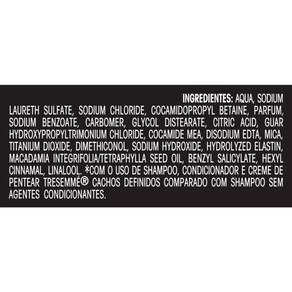 Indicado para cabelos cacheados do tipo 2BC e 3ABC. O novo Shampoo TRESemmé Cachos Definidos hidrata, define e dá movimento aos cabelos cacheados que precisam de um boost de hidratação. Ele foi profissionalmente desenvolvido com Fórmula Micelar que, por meio de moléculas inteligentes, remove as impurezas de maneira delicada e eficaz, sem agredir os fios. Além disso, sua fórmula é enriquecida com Elastina e Óleo de Macadâmia e garante cachos definidos e hidratados sem pesar, ao mesmo tempo deixando-os soltinhos mantendo seu movimento natural. Pode ser usado todos os dias e é indicado para cabelos cacheados do tipo 2BC e 3ABC.