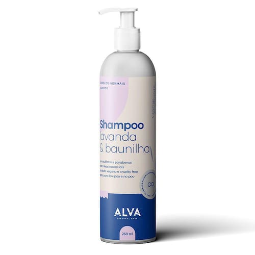 A combinação dos óleos essenciais do Shampoo Vegano Lavanda e Baunilha Alva promovem uma limpeza eficiente e nutritiva a cabelos normais a secos.
