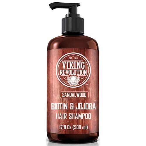 Viking Revolution Xampu masculino de sândalo com biotina e óleo de jojoba – xampu masculino natural para cabelos com vitamina B5 – xampu para queda de cabelo masculino para queda de cabelo (500 ml)