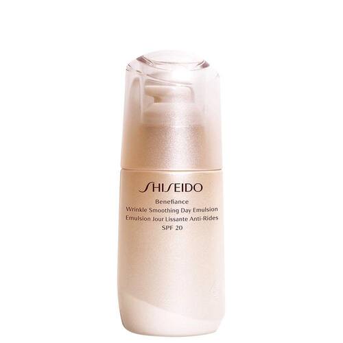 Emulsão Redutor de Linhas de uso diurno. Com textura leve e refrescante, Shiseido Benefiance Wrinkle Smoothing Day FPS 20 suaviza as rugas, preenche as linhas, firma e hidrata a pele.