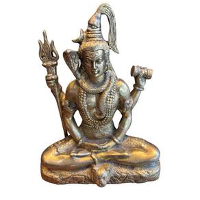 Shiva Mahadeva de Bronze 17 Cm Mahadeva - Grande Deus Shankara - o meditador, simbolo da disciplina Shambo ou Shambu - onde reside toda alegria. Simboliza a alegria da transformação e do caminho espiritual. Shiva é conhecido como um deus da trindade hindu. Representa a destruição e a transformação. Essa trindade é chamada trimurti. Os quatro cães representam os quatro Vedas. O poder de criação, manutenção e destruição são uma mesma coisa. Shiva, quando visto como pai de Ganesha e Shasta ele é visto como o Absoluto. Ele é chamado assim como Mahadeva ou Sadashiva. O grande Deus. Iconografia Shiva representa a ascese, a austeridade, a renúncia. Shiva meditante, nos mostra que ele representa o estado de tranquilidade, de plenitude. E mostra, pela iconografia, como nós atingimos esse estado. Olhos - aparece numa postura de Yoga com olhos semicerrados, em Shambhavi mudra. Representa o estado de equanimidade. Mostra que ele não está totalmente envolvido com o mundo, mas ao mesmo tempo não o ignora. Ele está estabelecido no Ser, mas com o corpo lidando com o mundo. Não se deve envolver totalmente com o mundo, nem se afastar totalmente dele. Neve - representa a mente sáttvica e o silêncio. Essa é a mente apropriada para a meditação. Decoração de Flores - Representa as ações positivas, belas e perfumadas. Karma Yoga é entregar-se aos frutos das ações. Assim, em Karma Yoga, qualquer ação se torna uma oferenda, bela como as flores. Então Karma Yoga purifica a mente. A mente fica, então, branca, preparada para o autoconhecimento. Kailash - é uma montanha coberta de neve. Kailash quer dizer lar feliz. E Himalaya quer dizer morada da neve, simbolizando a mente sattiva, a mente preparada para o autoconhecimento. Trishula - O tridente que aparece nas ilustrações de Shiva é o trishula. É com essa que ele destrói a ignorância nos seres humanos. Suas três pontas representam os 3 gunas: tamas, rajas e sattva. Serpente - representa sempre o ego. Como Ganesha e outros, aqui representa que Shiva dominou o ego e este se tornou um adorno. Lua - a lua representa o tempo que tudo destrói e transforma. A lua representa a mente com as suas lembranças e passados. Ele quer mostrar que a lua é um adorno. A bagagem, as memórias não incomodam, mas enfeitam. A personalidade é um adorno, é um tempero. Dhamaru - representa o poder de criação que é o som, a primeira manifestação da criação. A pele do trigre - representa o ego domado. O tigre é arrogante como o ego. Não há mais conteúdo do ego, apenas a pele, que é necessária para que o indivíduo se relacione com o mundo. O sábio senta no corpo. E o corpo senta no chão. O sábio habita o corpo. Camandalu - representa sanyasa. Representa a simplicidade. As lágrimas de Shiva Com o seu poder yogi Shiva sentou em contemplação e meditou numa divina para acabar com o asura. Essa é Agoura chamejante . Ele ficou sentado com os olhos abertos contemplando durante mil anos. Seus olhos sofreram no processo e lágrimas caíram e caíram no chão. Essas lágrimas deram origem a essa árvore que dá a semente Rudraksha aksha - olho , significa, olho de Shiva. Quando fazemos meditação, o asura invencível é o ego. Nós precisamos juntar todas as forças, todos os devas para lidar com o ego. Pela contemplação e pelo desapego nós purificamos a mente. E isso demora, como Shiva levou mil anos contemplando. Shiva pode ser o sábio que abençoa o discípulo. Ou como o próprio buscador que chega no objetivo final através da do desapego. Ego é chamado também, Madu , . Porque é muito doce. Material: Bronze Medidas: 20 cm x 17cm Peso: 980gramas Feito na Índia